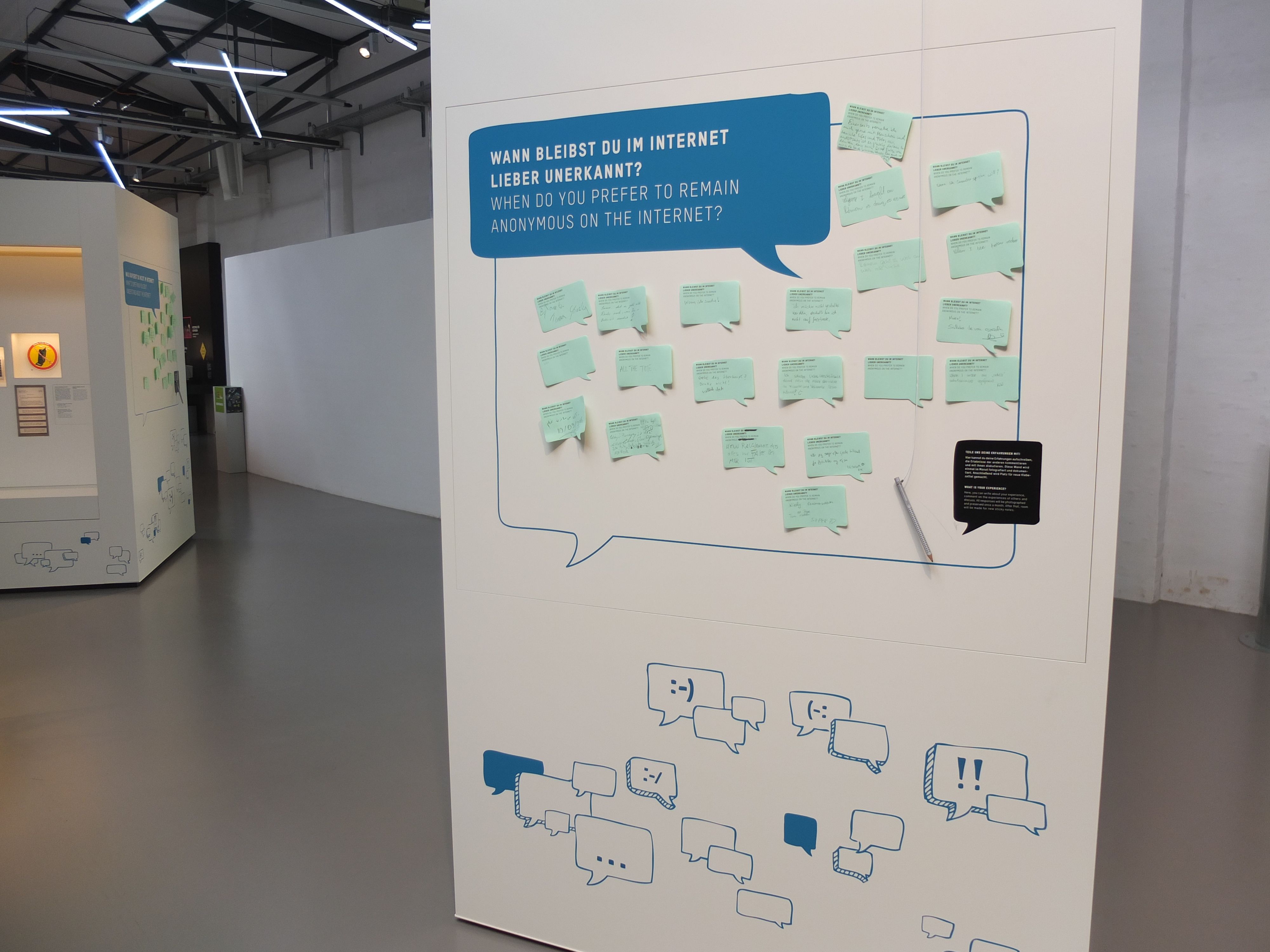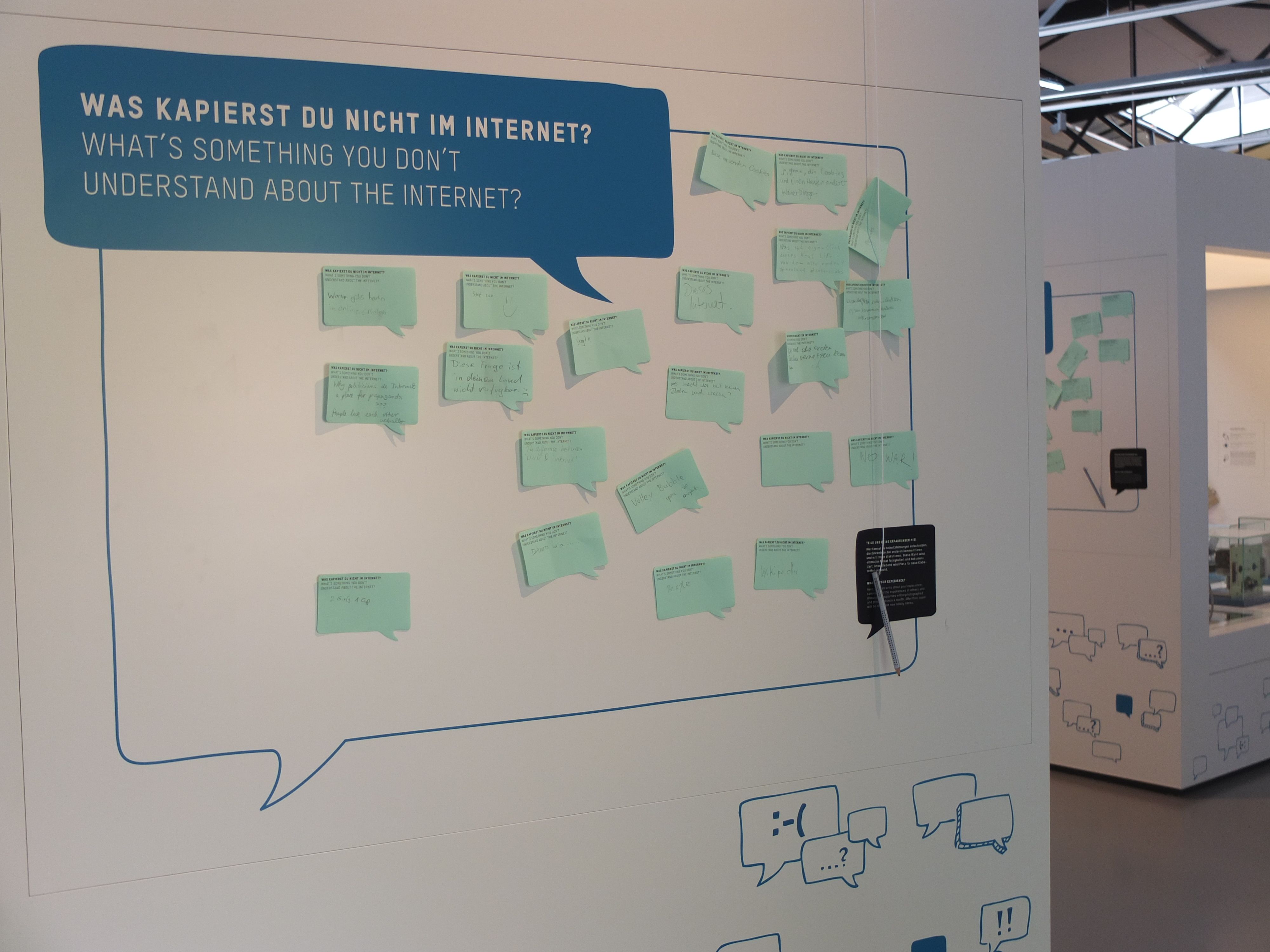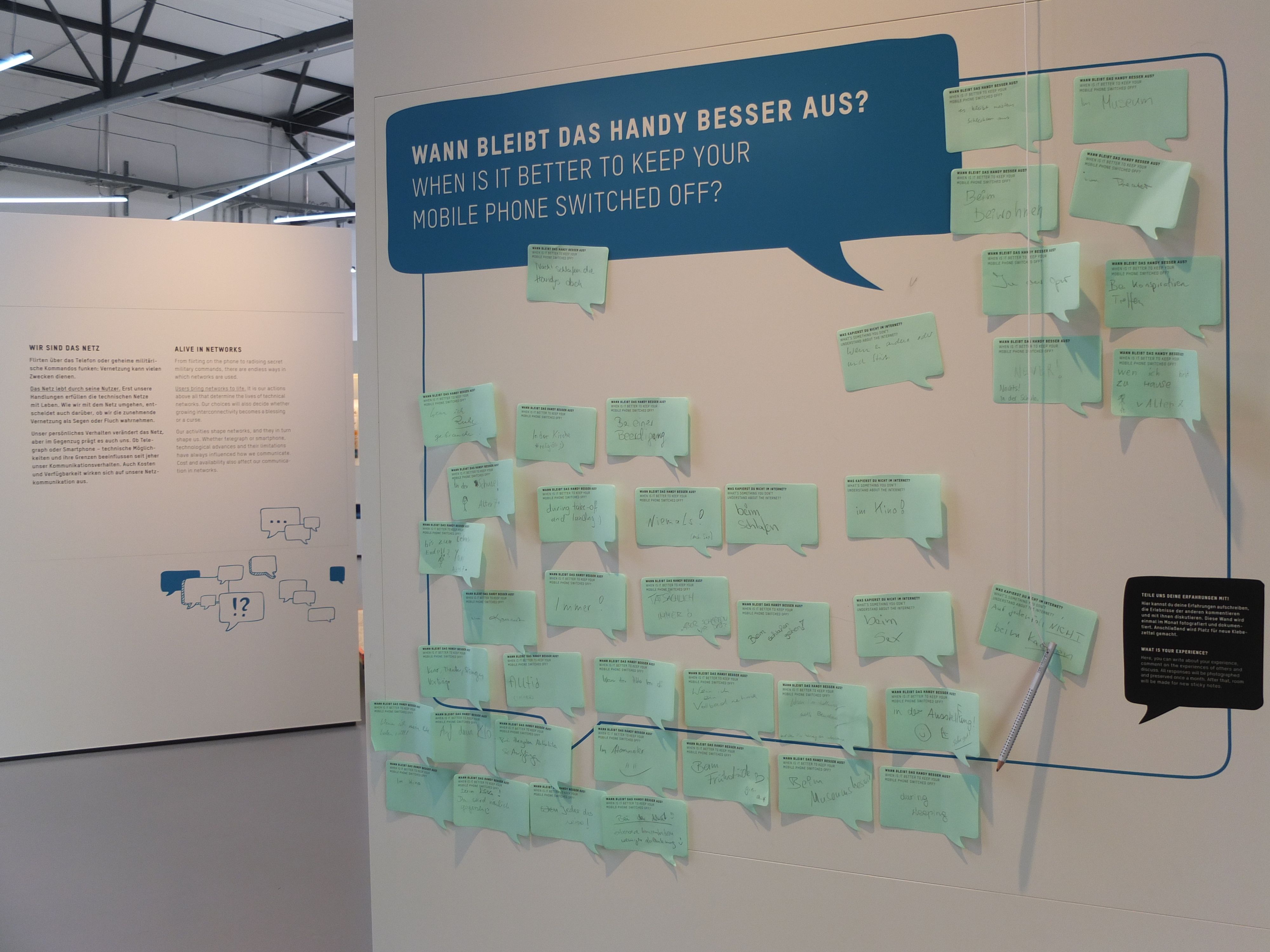 Seit einer Woche hat die Ausstellung „Das Netz“ geöffnet und die ersten Gäste haben ihre Spuren hinterlassen: Gleich hinter dem Eingang der Ausstellung beginnt der Bereich „Connect. Wir sind das Netz“. Wer die Ausstellung besucht, kann hier seine Statements geben zum Leben mit dem Netz. Die ersten Antworten zu den Fragen sind schon zusammengekommen: